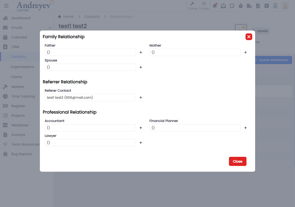 This is a modal using modalform to customise for filling in contact relationships, Family, Referrer and Professional.