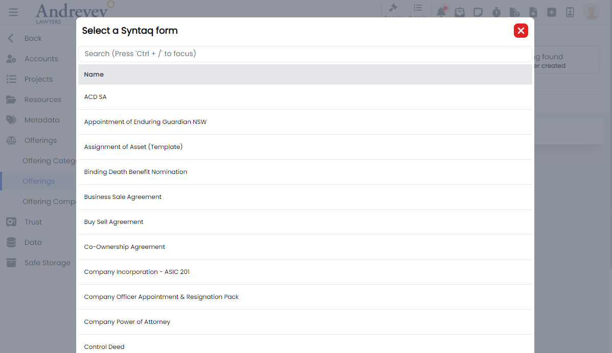 This component renders a modal using modalform, for creating a safe storage for an organisation.