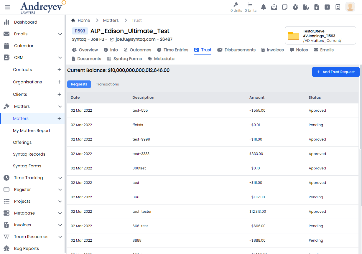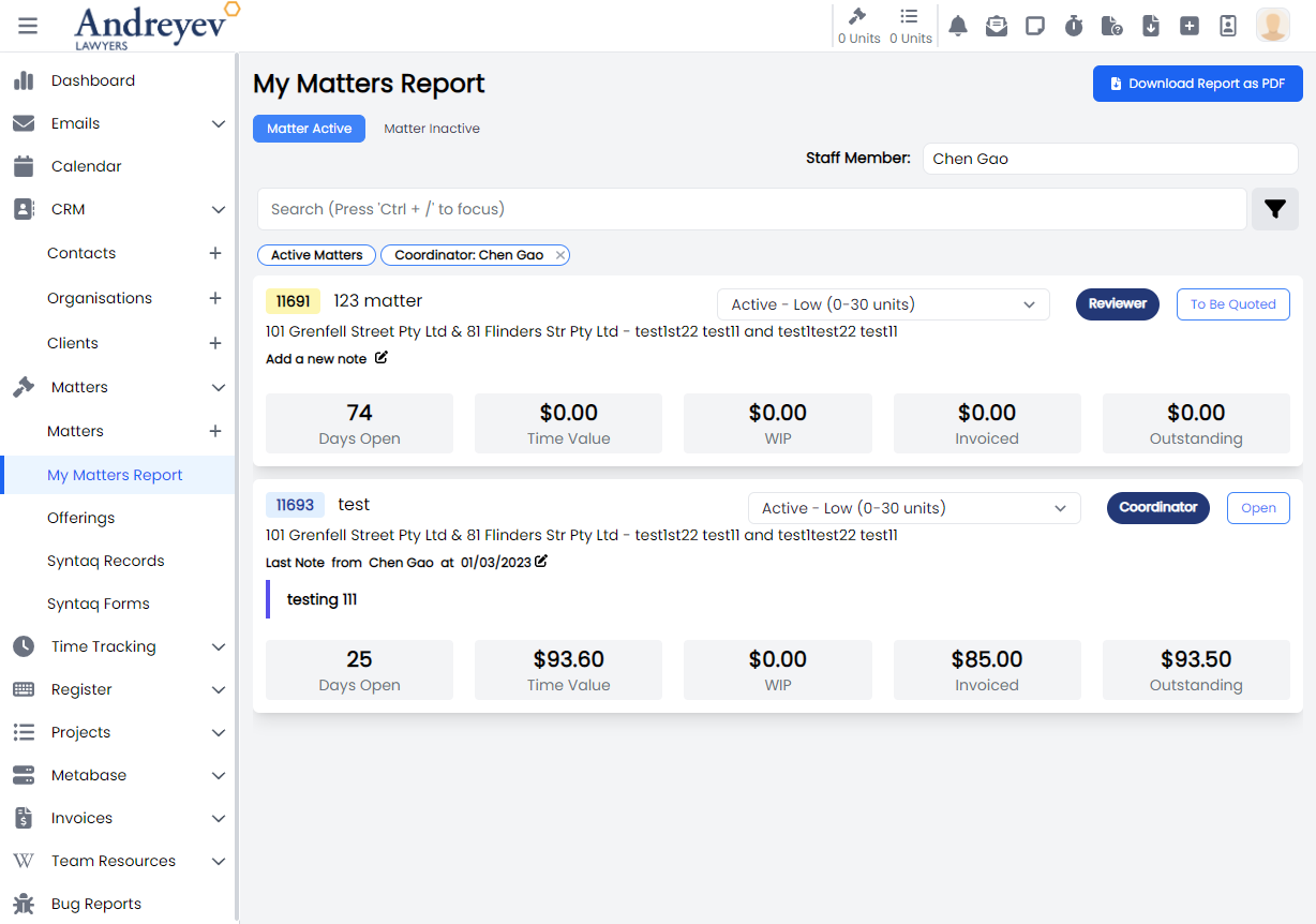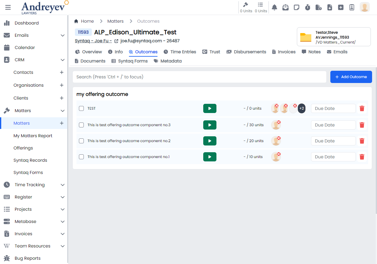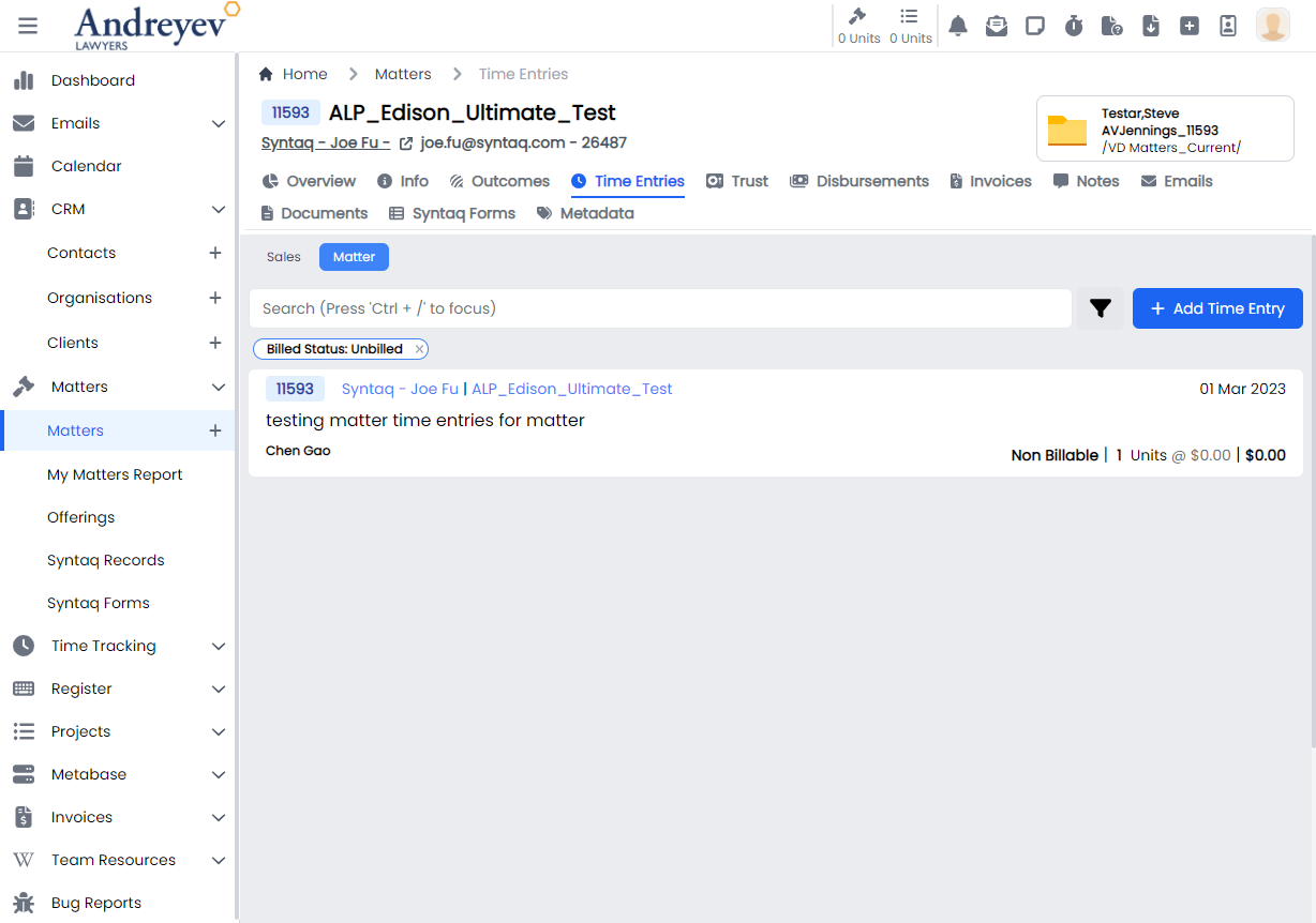 This component renders each inline matter time entries under "Time Tracking" > "Time Entries" > "Matter" section.