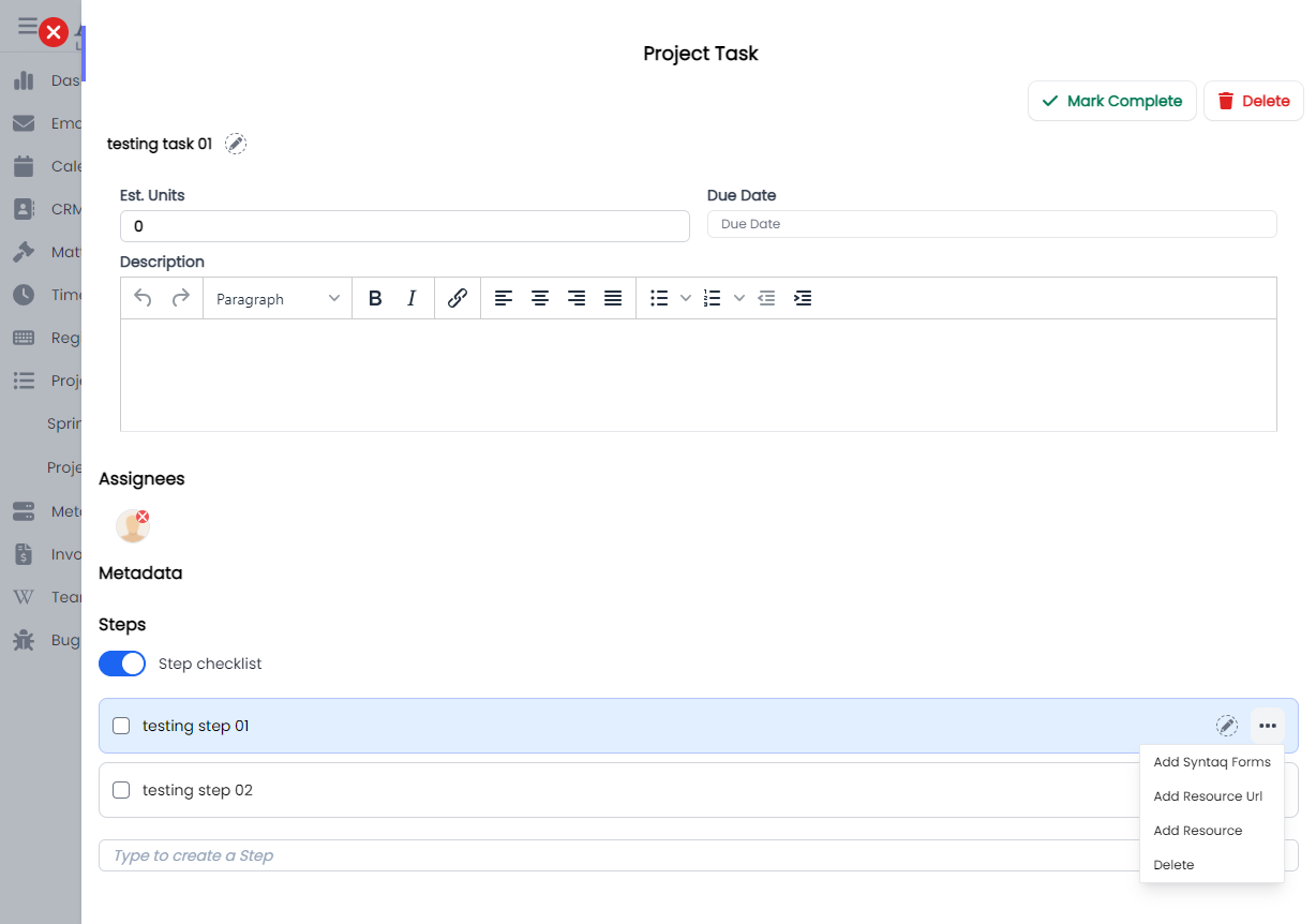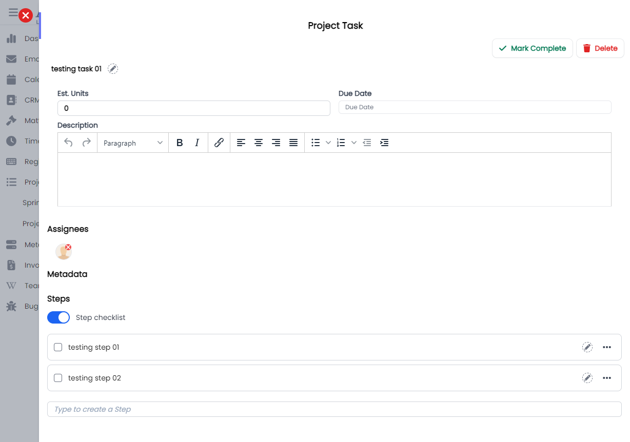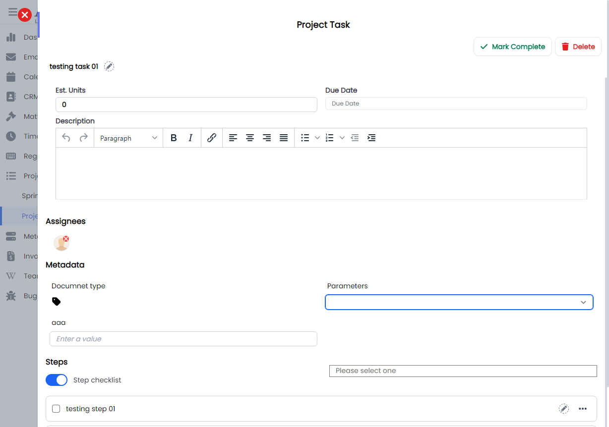 <project-task-metadata :project-id="projectId" :id="id" />The following is a visual of this component at work.