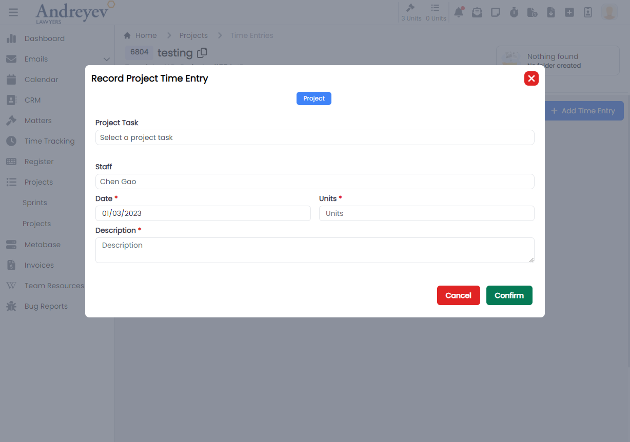 This is a component calling CreateTimeEntryFormForProject into a modal to customise for creating a new time entry inside a project.